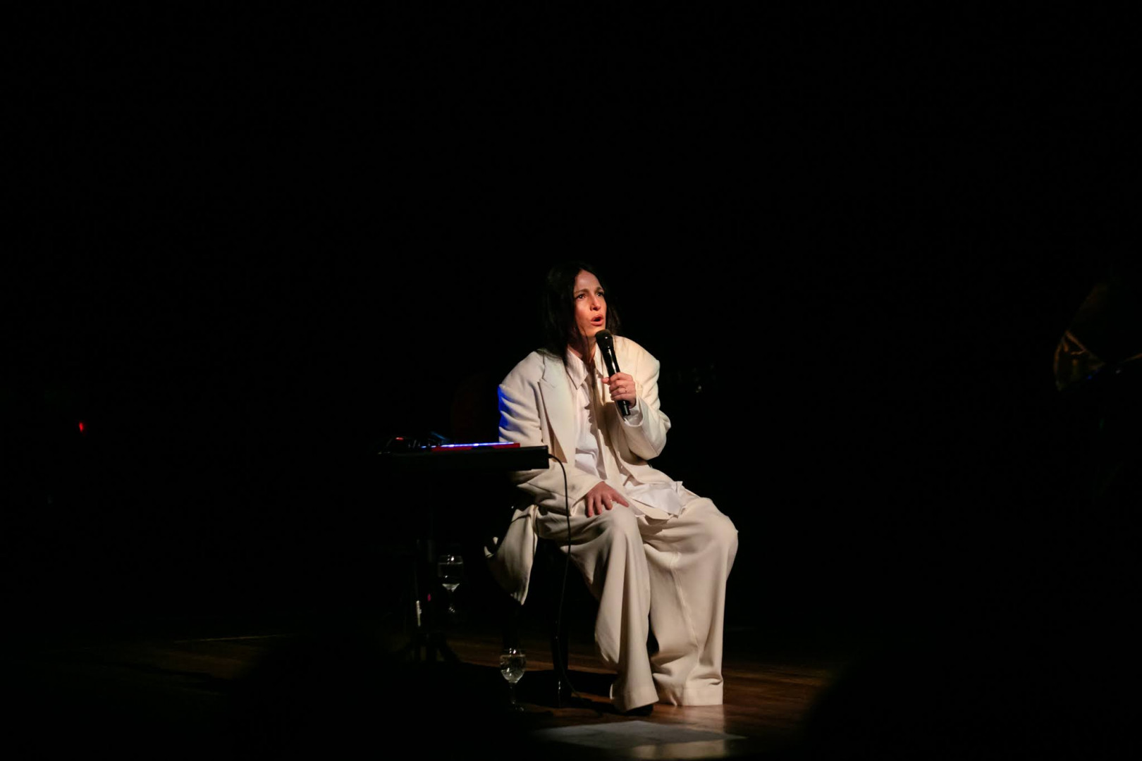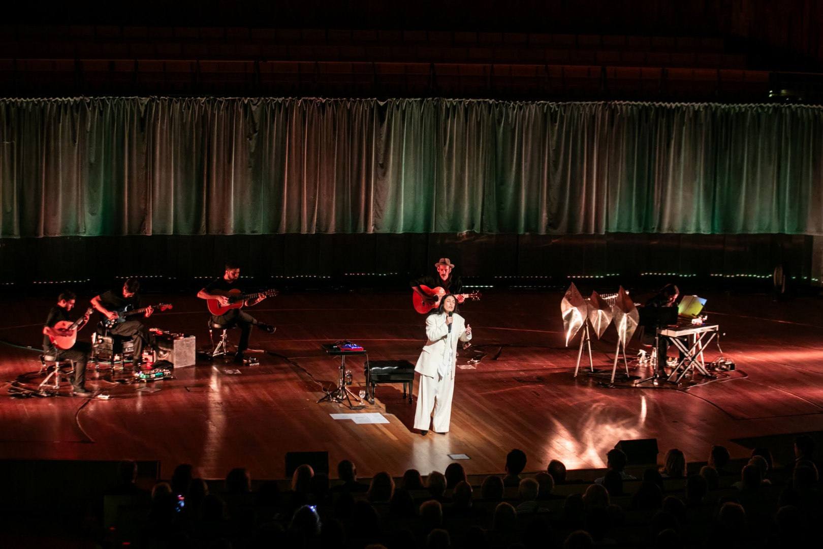 “Desde 2016 vengo a esta sala, esta vez a traer un nuevo disco”, fueron las primeras palabras de la portuguesa que asomó en escena luciendo íntegramente de blanco en contraste con sus músicos vestidos de negro. Y sí, Carminho se distingue, su forma de cantar difiere a la de las fadistas tradicionales: ella suma percusión, bajo y hasta la voz en off de la emblemática Laurie Anderson en “Saber”, una de las canciones que integran su álbum más reciente.