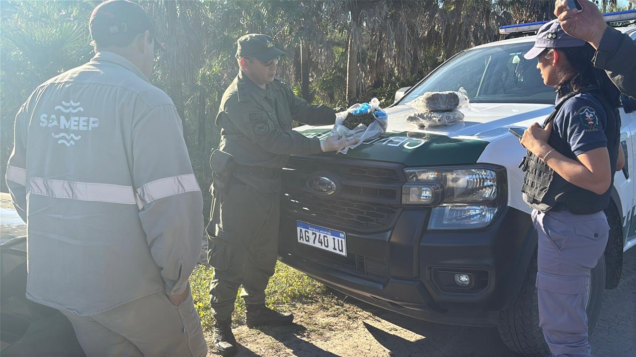 Personal del Escuadrón 14 “Las Palmas”, en circunstancias de hallarse apostados sobre la Ruta Provincial Nº 1 altura puente nacional, divisaron la aproximación de una camioneta, la cual al advertir la señalización de detención de los uniformados para su respectivo control documentológico, giró bruscamente dándose a la fuga en dirección a la localidad chaqueña de Margarita Belén. En dicha acción los involucrados, descartaron por la ventanilla del vehículo paquetes amorfos conteniendo cannabis sativa. Estos mismos fueron hallados e incautados por los gendarmes luego de un rastrillaje en la vera de la traza vial.