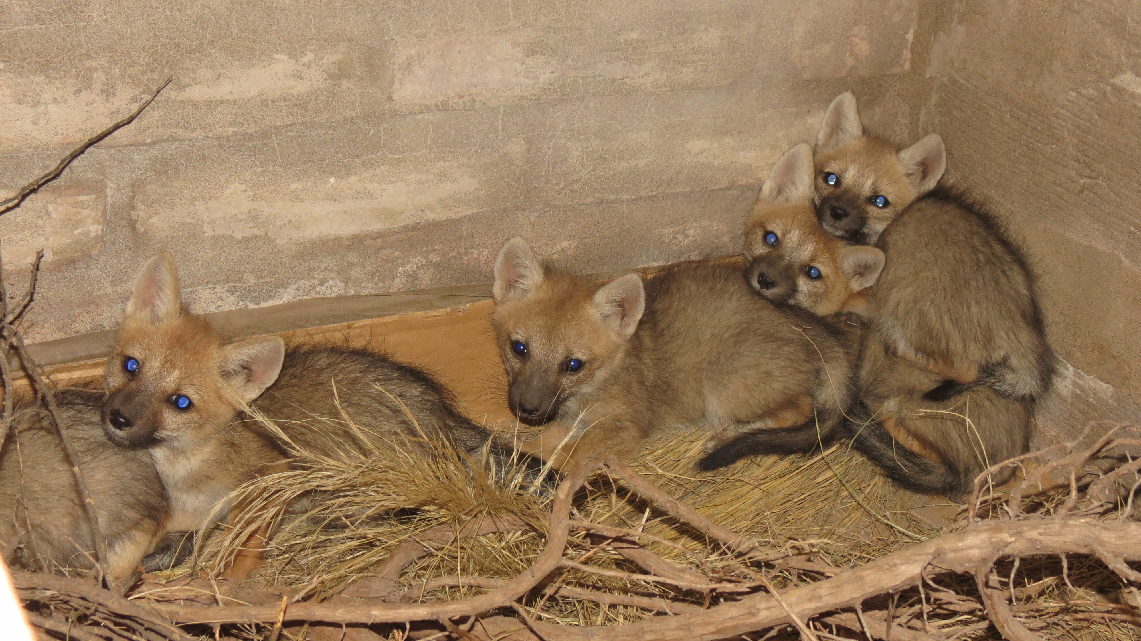 Cinco cachorros de zorro gris, un nuevo rescate en el que participó el Parque Nacional Lihué Calel