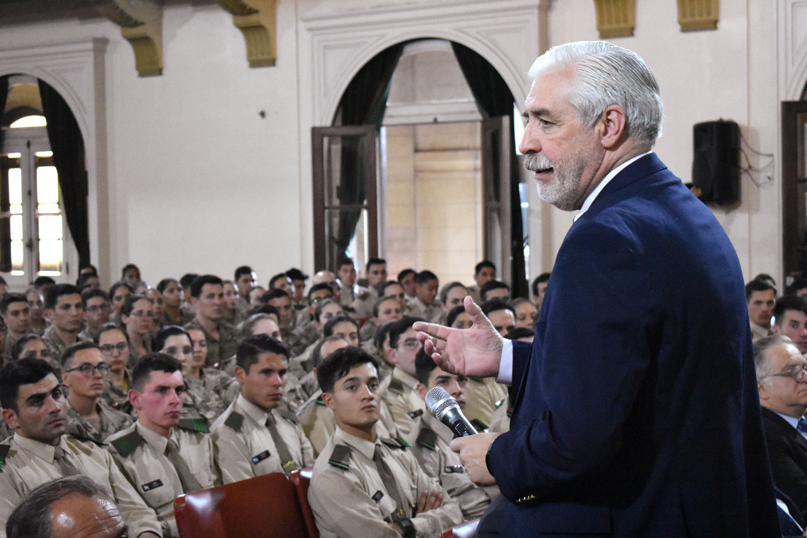 “Esta charla que estamos brindando hoy es para que ustedes nos vayan conociendo desde el principio de su carrera, porque el IAF no es una institución exclusiva del personal militar retirado: el IAF brinda servicios a todos los miembros de las Fuerzas y sus familias. Es un Instituto formado por ustedes y para ustedes, y eso lo tienen que saber desde ahora”, aseguró Fiochi, en el inicio de su presentación, ante más de 200 cadetes y profesionales que se convertirán en oficiales del Ejército en diciembre de este año.