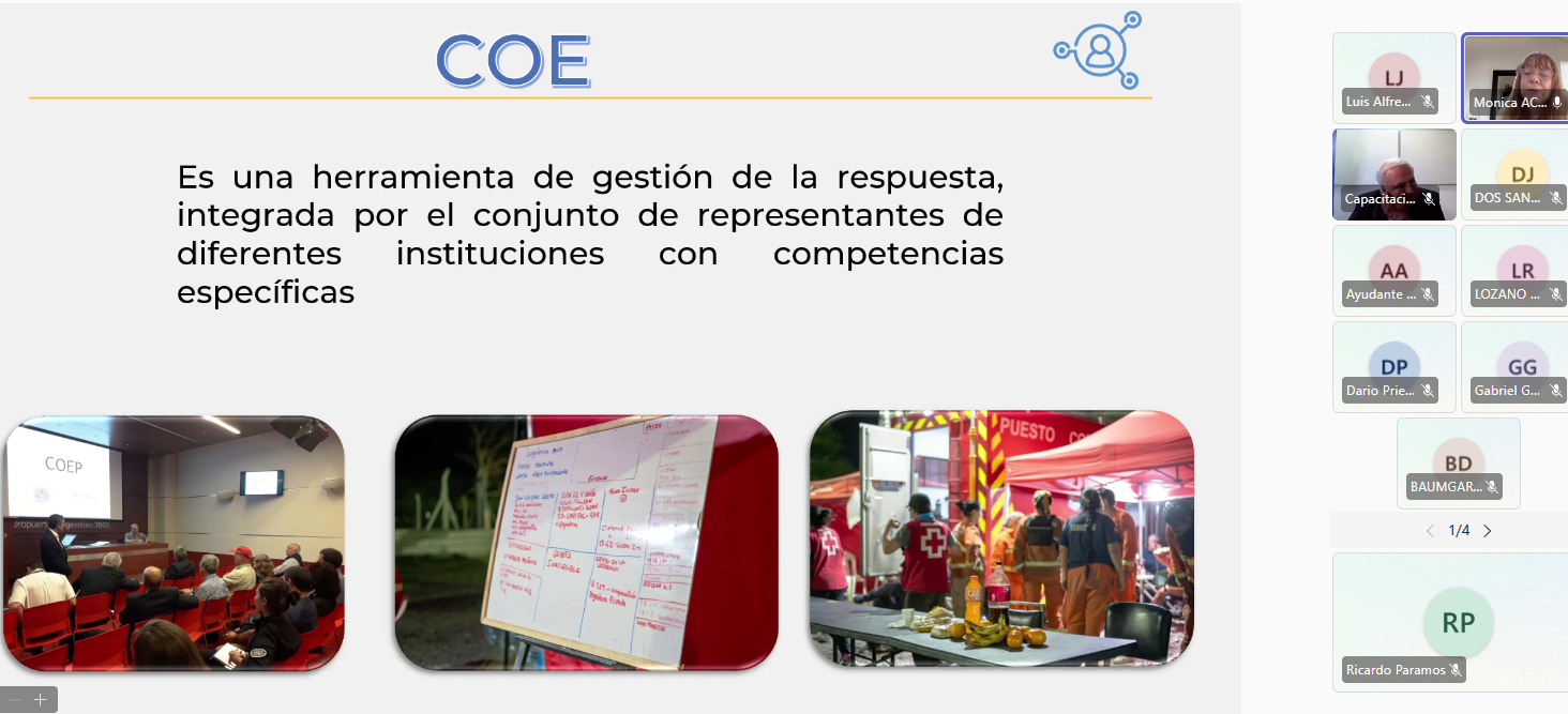 En esta capacitación se trató sobre la organización y funcionamiento del Centro de Operaciones de Emergencia Municipal (COEM) en el contexto de los escenarios de emergencias hídricas por crecidas del río Uruguay.