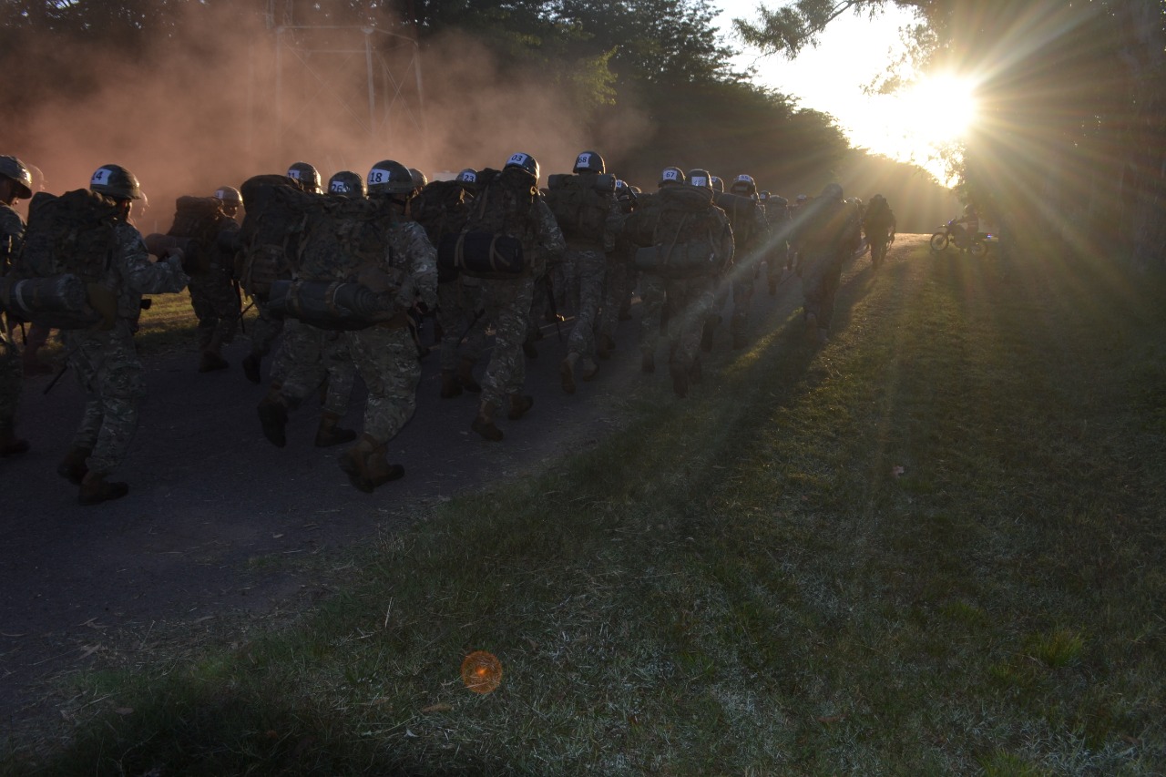Asimismo, como actividad natural del soldado, hubo exigencias de marchas a pie con armamento y equipo, progresivas en tiempo y distancia. Una tradición del curso es que quien va encabezando la marcha lleva el estandarte de la promoción de cursantes, y en caso de ser sobrepasado debe entregarlo a quien toma el primer puesto.