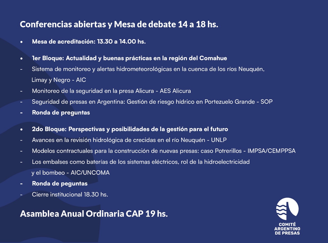 Entre las 13.30 y 18.30 hs., se llevará a cabo un encuentro sobre diferentes temáticas referentes a la seguridad de las presas. El ORSEP como Organismo rector en la materia participará de la convocatoria.