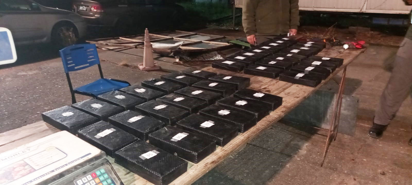 Al quitar el guardabarros, hallaron 40 paquetes rectangulares con el estupefaciente.