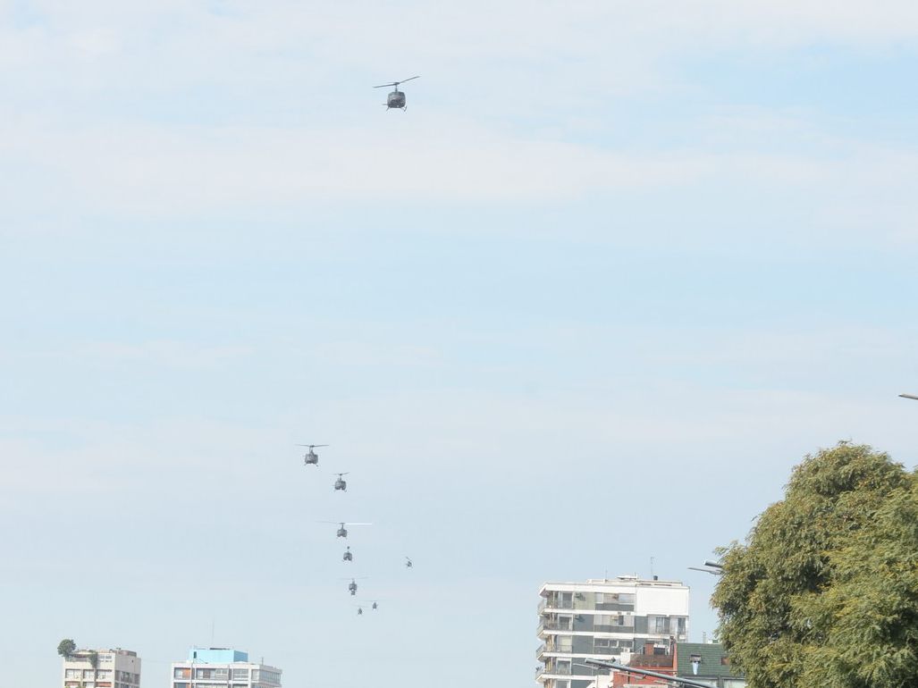 A su vez, el personal de Aviación de Ejército hizo su pasaje aéreo con una formación encabezada por un helicóptero Super Puma, seguido de helicópteros Bell UH-1H y Huey II y helicópteros Bell 206 de la Escuela de Aviación de Ejército.
