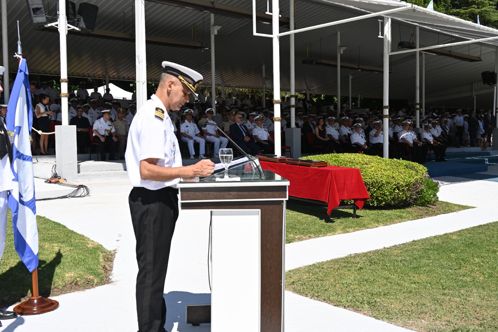 Durante el acto, que fue transmitido en vivo por el canal de Youtube de la Fuerza, se entonaron las estrofas del Himno Nacional y se realizó una invocación religiosa, a cargo del capellán auxiliar Diego Martín Segundo.