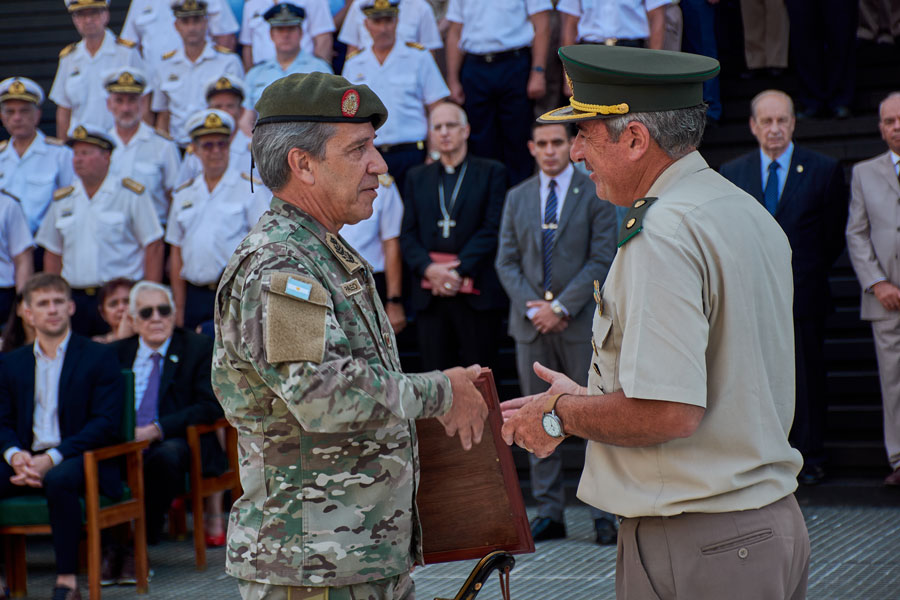“A todos mis camaradas, y en especial a los más jóvenes, los animo a ser profetas del futuro de unas Fuerzas Armadas que nos trascienden, los insto a construirlo con los pies sobre la tierra pero la mirada en el horizonte, el espíritu en la gloria y el corazón en la Patria”, finalizó el teniente general.
