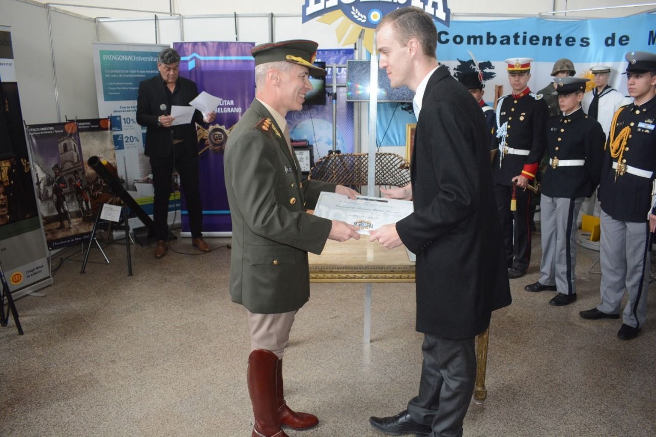 Respecto de la oferta universitaria del Ejército, el suboficial principal cadete Facundo Mones Ruiz, abanderado del Colegio Militar de la Nación, comentó a los presentes cómo ser oficial del Ejército Argentino.