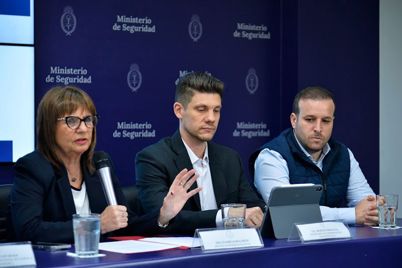 Junto con la ministra estuvieron presentes: el director del Instituto Nacional de Estadísticas y Censos (INDEC), Marco Lavagna; el secretario de Coordinación Administrativa del Ministerio de Seguridad, Martín Siracusa y los directores nacionales de Apoyo Federal a Emergencias, Santiago Hardie y del Sistema Nacional para la Gestión Integral de Riesgo (SINAGIR), Ignacio Cabello.