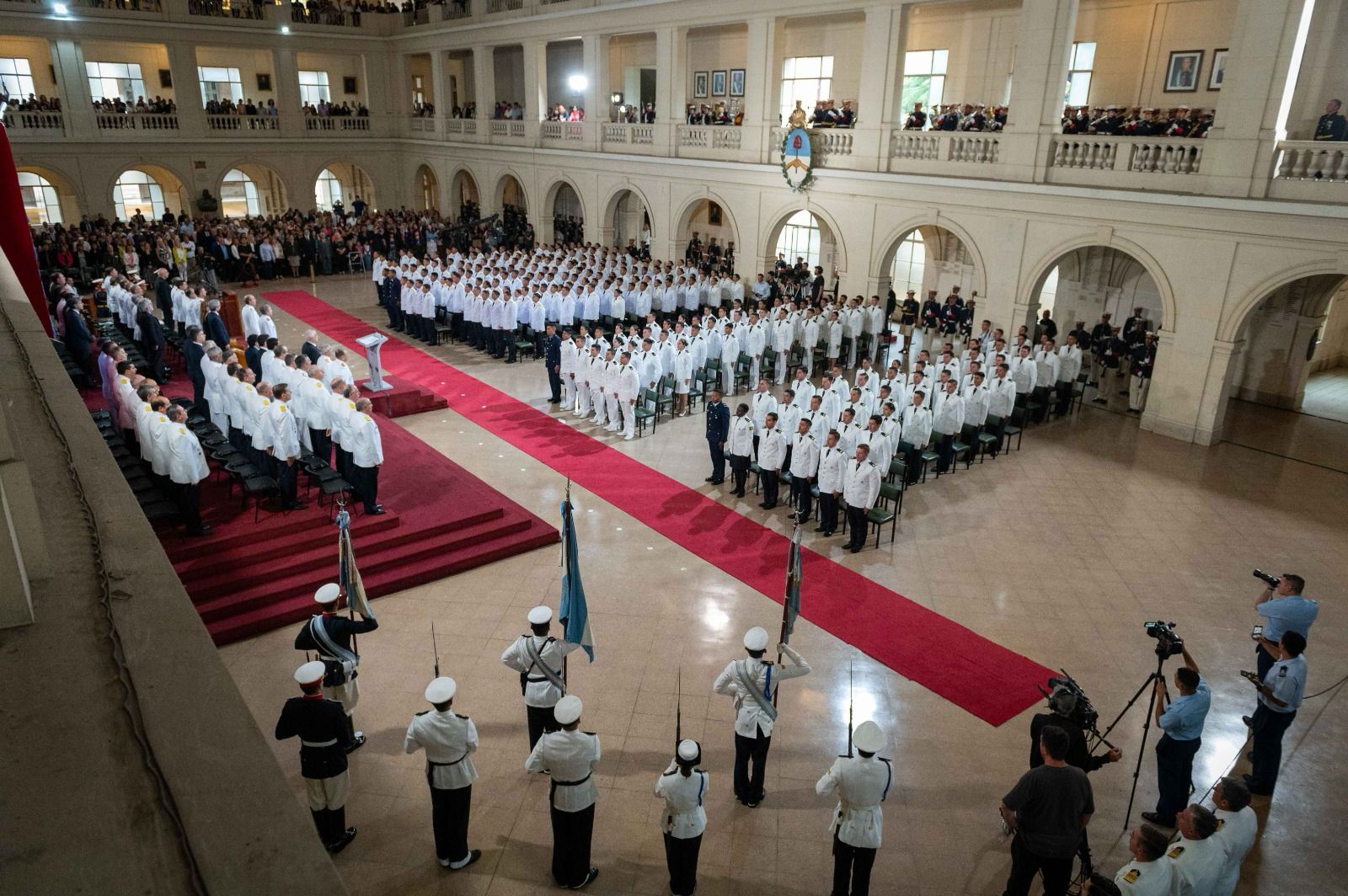Durante el acto celebrado en el Patio de Honor de esta histórica institución educativa, el ministro de Defensa tomó juramento de fidelidad a la Constitución Nacional a los flamantes oficiales: 167 subtenientes del Ejército (43 mujeres, 124 varones); 49 guardiamarinas de la Armada (16 mujeres y 33 varones), y 43 alféreces de la Fuerza Aérea (3 mujeres y 40 varones).