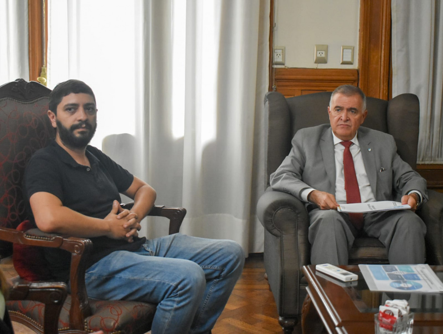 El subsecretario de Desarrollo Comunitario, Juan Manuel Vila, se reunió este jueves con el Vicegobernador a cargo del Poder Ejecutivo provincial de Tucumán, Osvaldo Jaldo, para trabajar conjuntamente una articulación que permita fortalecer desarrollos productivos en el territorio provincial. También participó de la reunión el responsable del Centro de Referencia del Ministerio de Desarrollo Social de la Nación en la provincia, Luciano Chincarini.