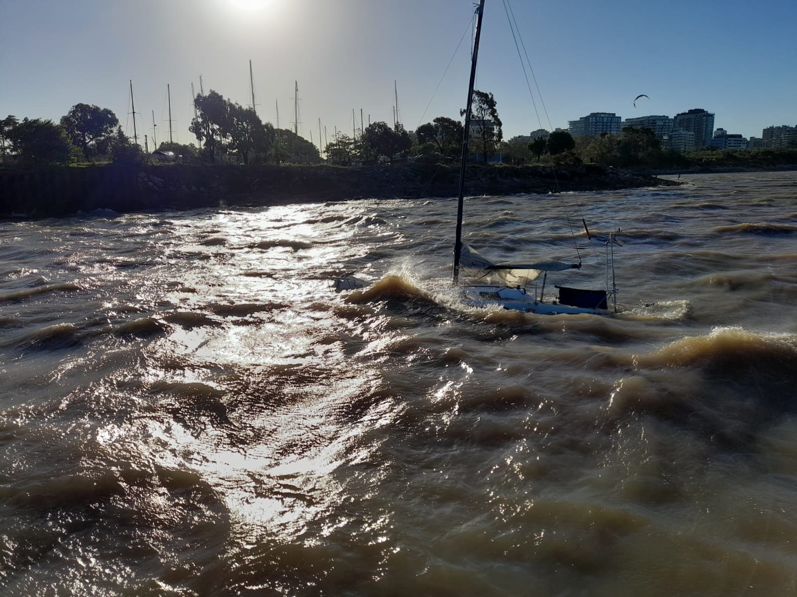 Personal de la Prefectura Naval Argentina rescató la tripulación del velero Bye Bye, cuando navegaba cerca del puerto de Olivos (provincia de Buenos Aires) y, debido al fuerte viento, se rompió el casco y comenzó a entrar agua en la embarcación.