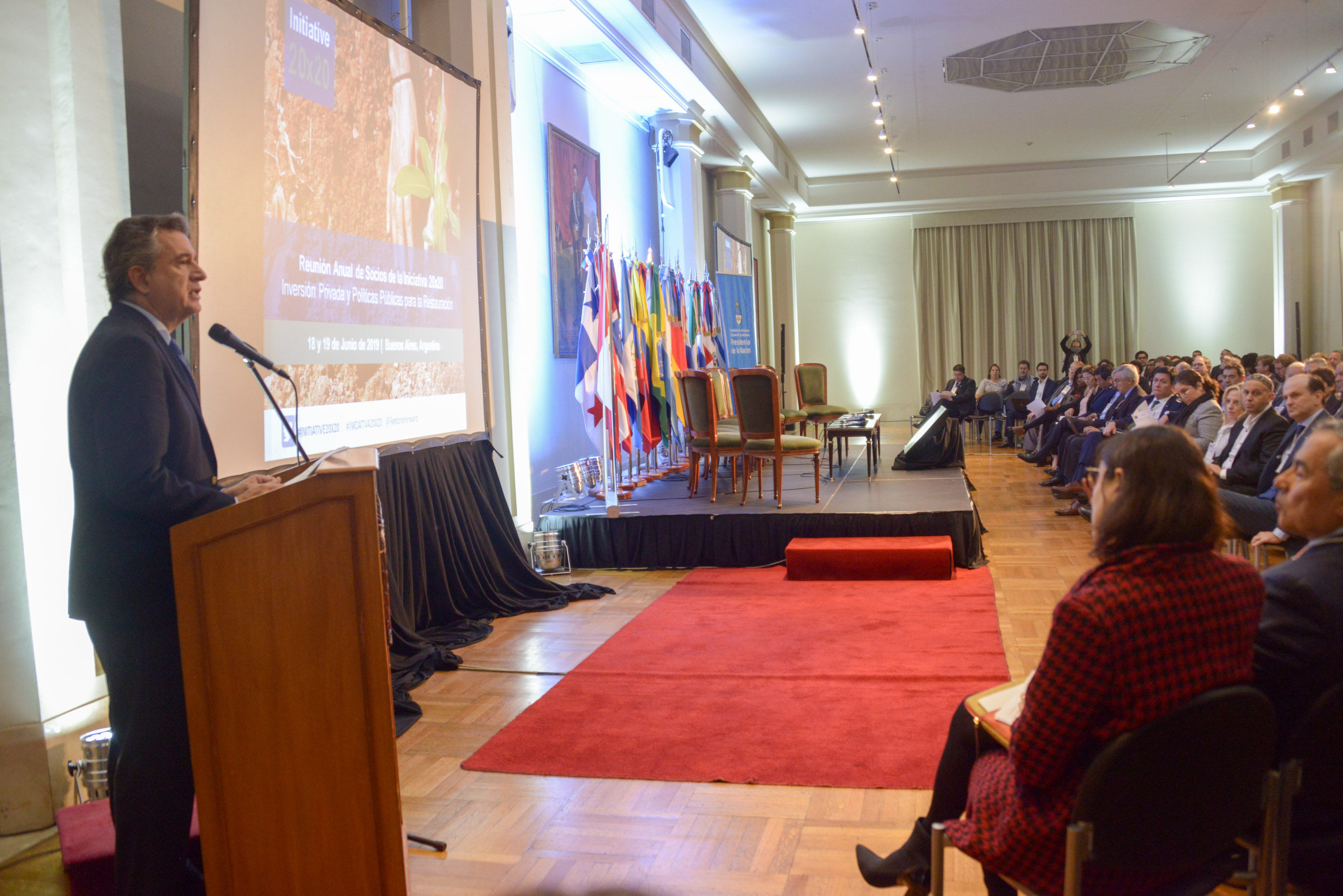 De la reunión participaron el secretario de Ambiente y Desarrollo Sustentable, Sergio Bergman; el embajador y subsecretario de Política Exterior, Luis Pablo Beltramino; el secretaria de la Iniciativa 20x20, Walter Vergara; funcionarios del INTA y de la Secretaría de Gobierno de Agroindustria de la Nación: y representantes de los gobiernos de Chile, Uruguay, Perú, Nicaragua, Ecuador, Guatemala, Colombia, República Dominicana, El Salvador, México, Panamá, Noruega y Alemania.