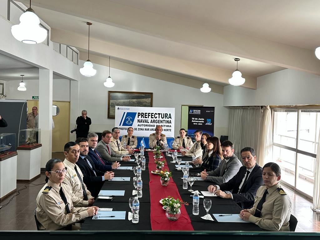 El Equipo Interdisciplinario para el Control de los Espacios Marítimos y sus Recursos (EICEMAR) brindó una exposición sobre el trabajo que realiza la Prefectura Naval Argentina en el marco de la problemática en la milla 201, en una charla dirigida a integrantes de la Cámara Federal de Apelaciones de Bahía Blanca, del Tribunal Oral en lo Criminal Federal, del Juzgado Federal N° 1 y sus respectivas Secretarías.