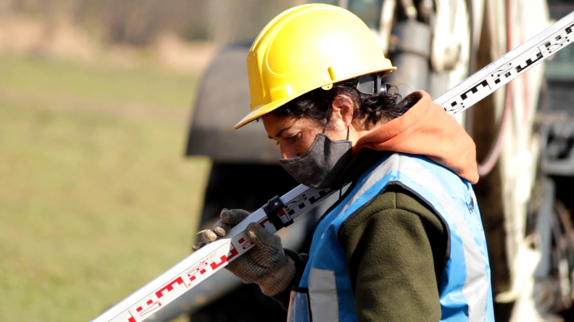 Débora vive en Mechita, una localidad que pertenece al partido de Alberti, ella era una trabajadora que había quedado desempleada a causa de la pandemia. Como madre soltera de tres hijos, no dudó en aplicar a la oferta laboral que vio en Facebook donde requerían trabajadores para la obra en cuestión. Luego de varias entrevistas y una capacitación, es quien maneja la retroexcavadora junto a dos mujeres más.