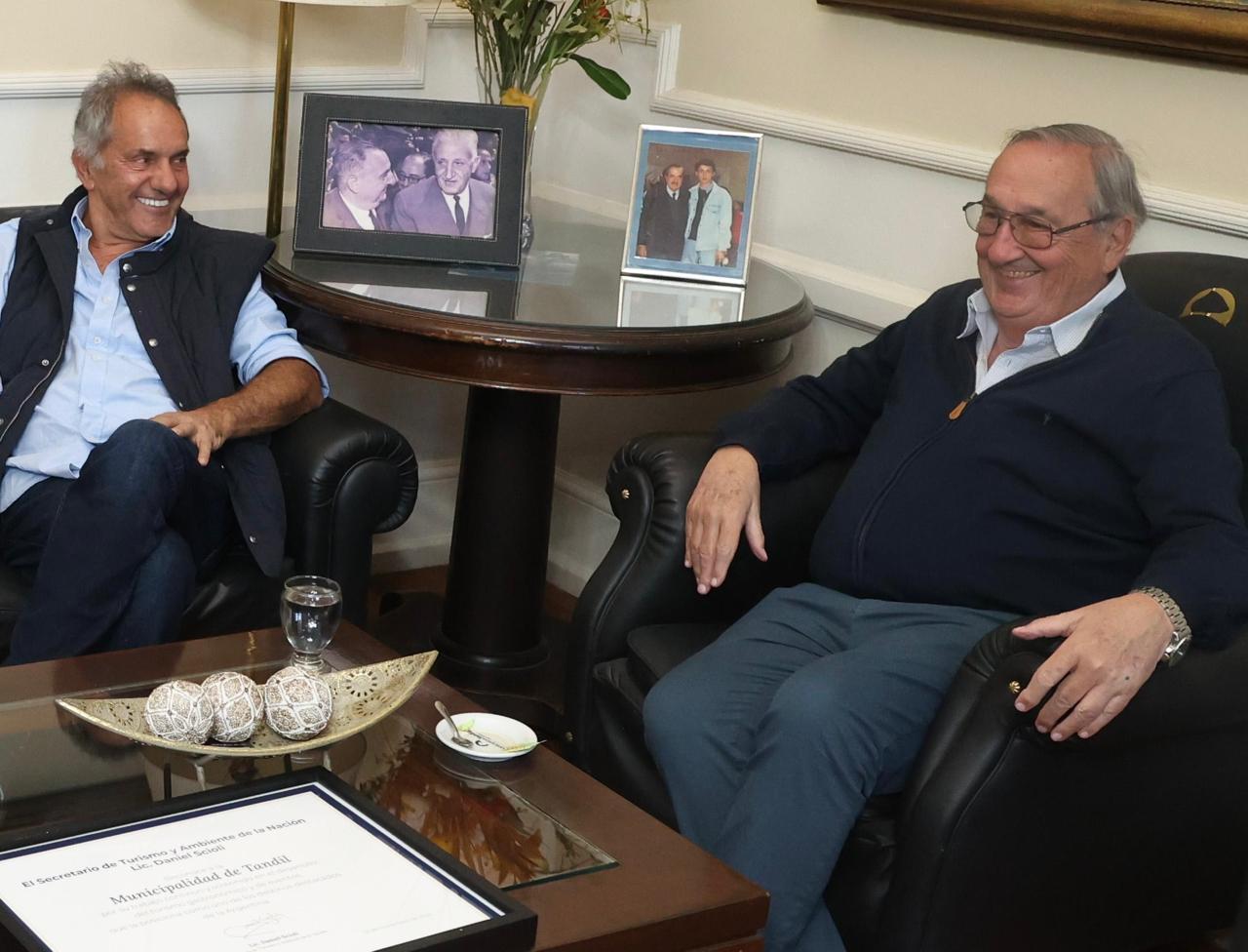 El secretario de Turismo y Ambiente de la Nación, Daniel Scioli, estuvo hoy en Tandil con el intendente Miguel Ángel Lunghi y autoridades del sector privado, entre ellos el presidente de la Asociación de Hoteleros y Gastronómicos de Tandil, Nicolás Funaro, quienes le confirmaron que “la ciudad tiene ocupación plena”.