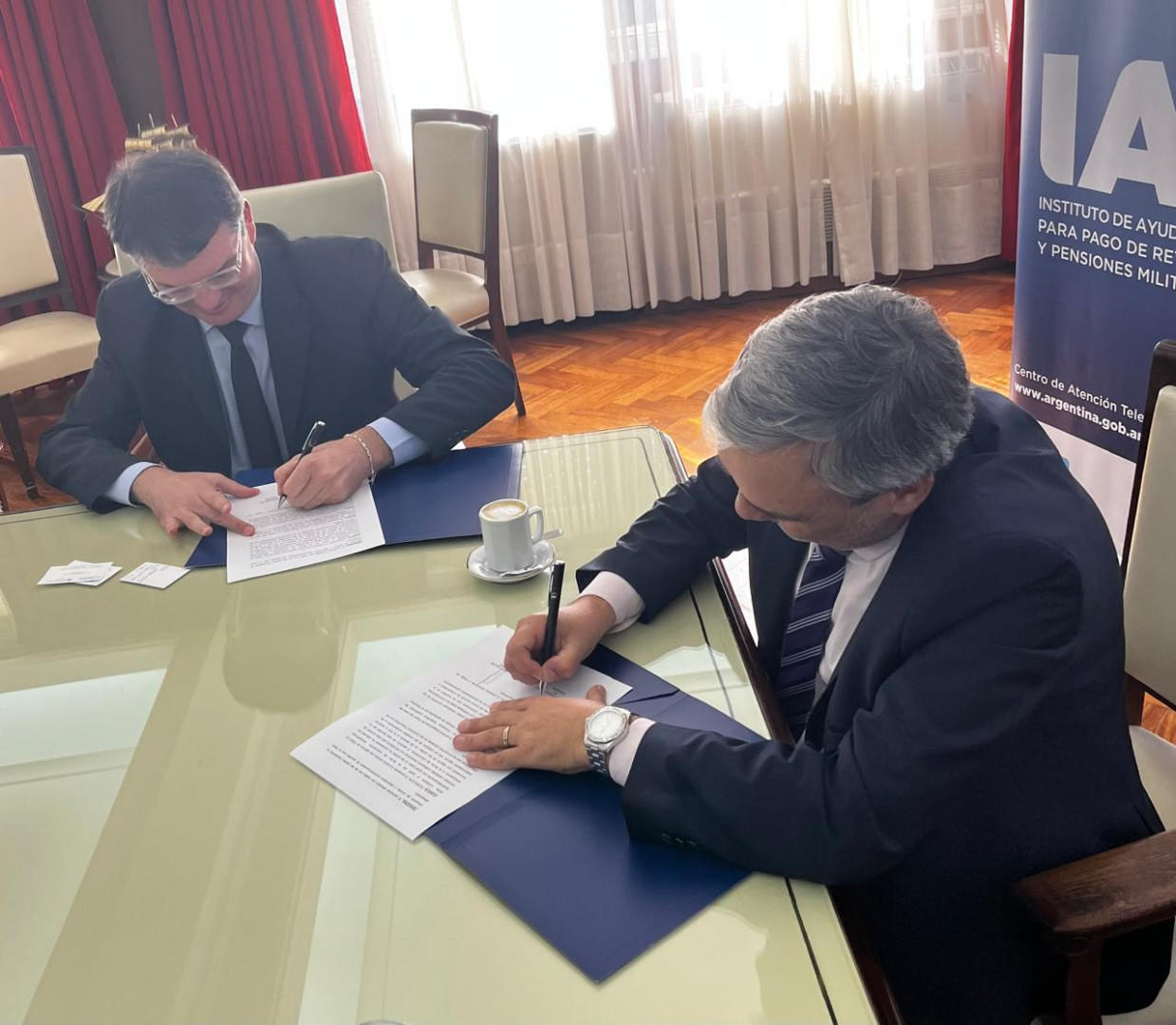 Este jueves, en la sede central del Instituto de Ayuda Financiera para Pago de Retiros y Pensiones Militares (IAF), se llevó a cabo la firma de un convenio marco de colaboración institucional. El mismo tiene por objeto desarrollar acciones para la asistencia mutua entre COVIARA y el IAF en aquellas actividades que hagan al mejor cumplimiento de los fines Estatutarios de ambos organismos.