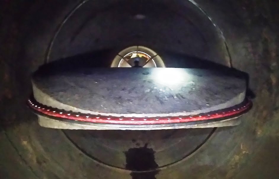 Tras el vaciado del túnel de conducción y tubería mediante la apertura de las válvulas de regulación Howell-Bunger, los fiscalizadores ingresaron por la boca de inspección ubicada en el ramal de margen izquierda del pantalón invertido que alimenta al grupo generador de la Central Nihuil IV.