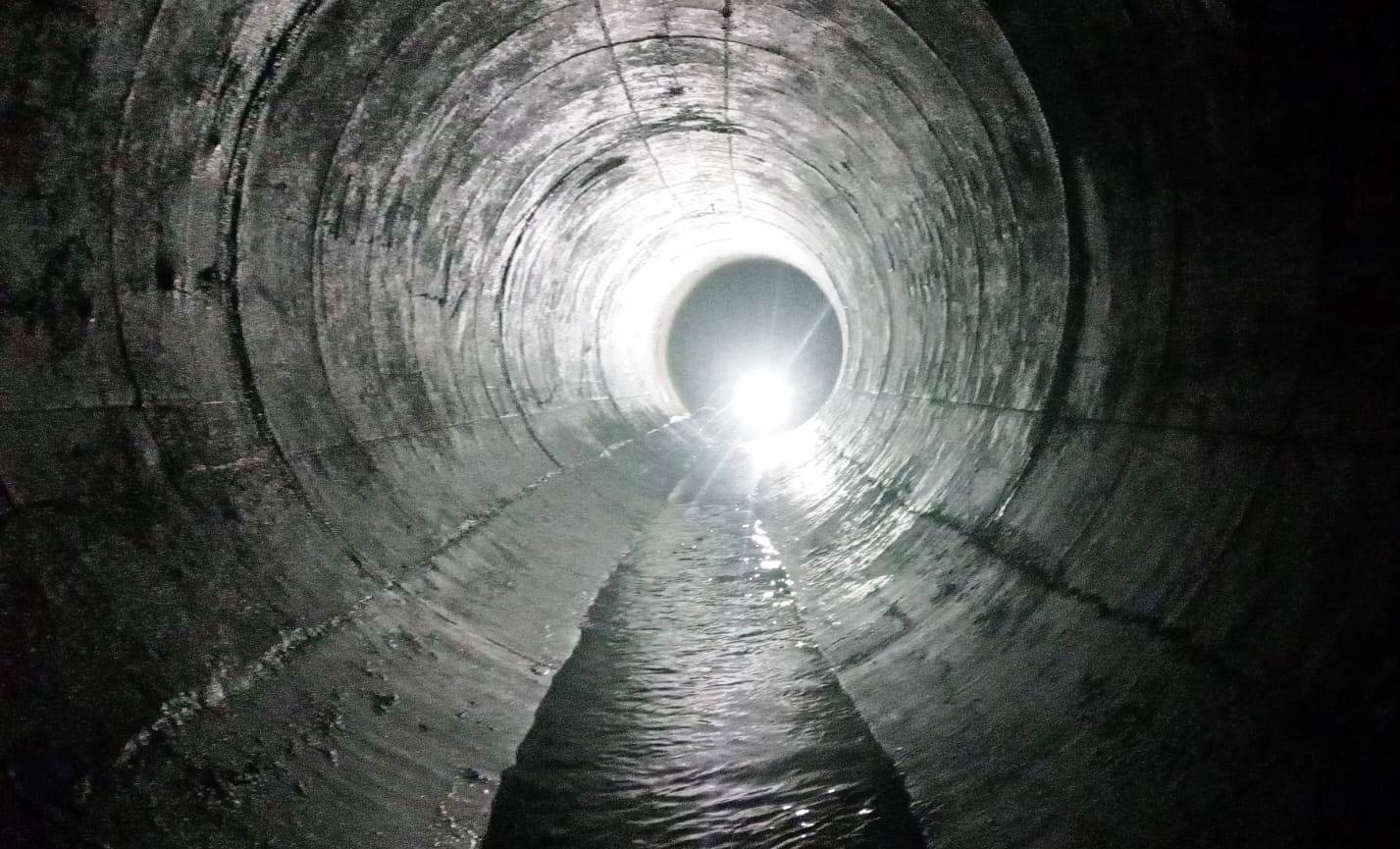 Oportunamente, recorrieron el túnel de conducción en su totalidad hasta la tubería y tetrafurcador metálico. El conducto, de 250 metros de longitud y en un diámetro de 4,5 metros, está encavado en roca y hormigonado. Observaron su estado de mantenimiento, como así también, del escudo interno y sello de la compuerta de obra de toma principal y del sistema de riego.