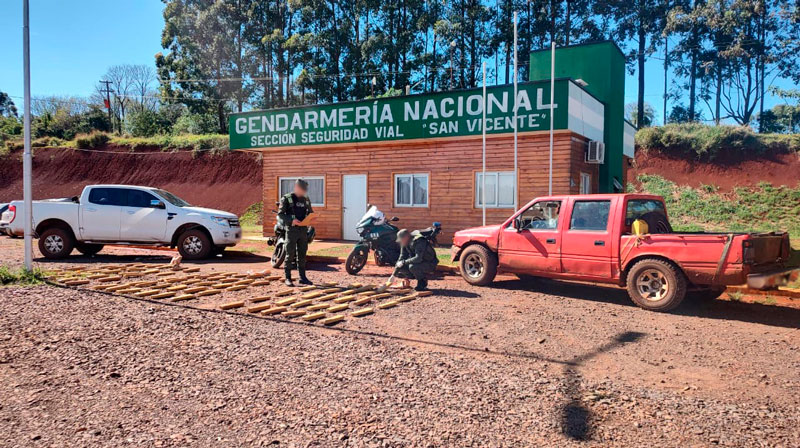 Efectivos del Escuadrón 49 “San Vicente” de Gendarmería Nacional detuvieron a cuatro personas en la provincia de Misiones, tras un procedimiento que permitió incautar más de 84 kilos de marihuana, un arma de fuego calibre 22 largo con municiones, cocaína, dos vehículos, dinero en efectivo y teléfonos celulares.