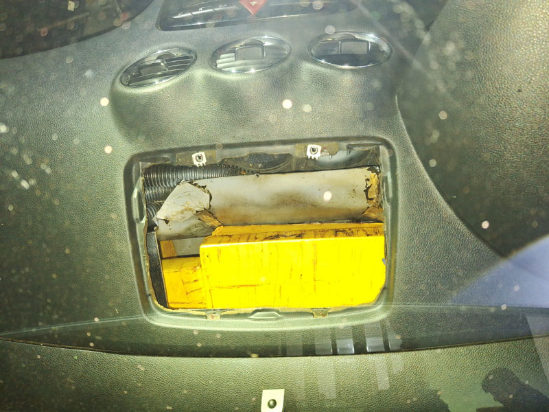 Durante la inspección de rutina, los gendarmes advirtieron que los tornillos de la estructura del torpedo habían sido removidos. Ese detalle despertó sospechas y motivó una revisión minuciosa del automóvil, que permitió hallar 52 paquetes rectangulares envueltos en cinta amarilla.