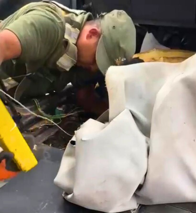 Al controlar el coche, los gendarmes descubrieron un compartimiento debajo de la alfombra ubicada del lado acompañante de donde se extrajeron sospechosos "ladrillos", lo que motivó a los funcionarios a profundizar la requisa. De este modo hallaron otros doble fondo en el baúl y en los zócalos. En total se contabilizaron 186 paquetes rectangulares compactos con el sello del delfín.