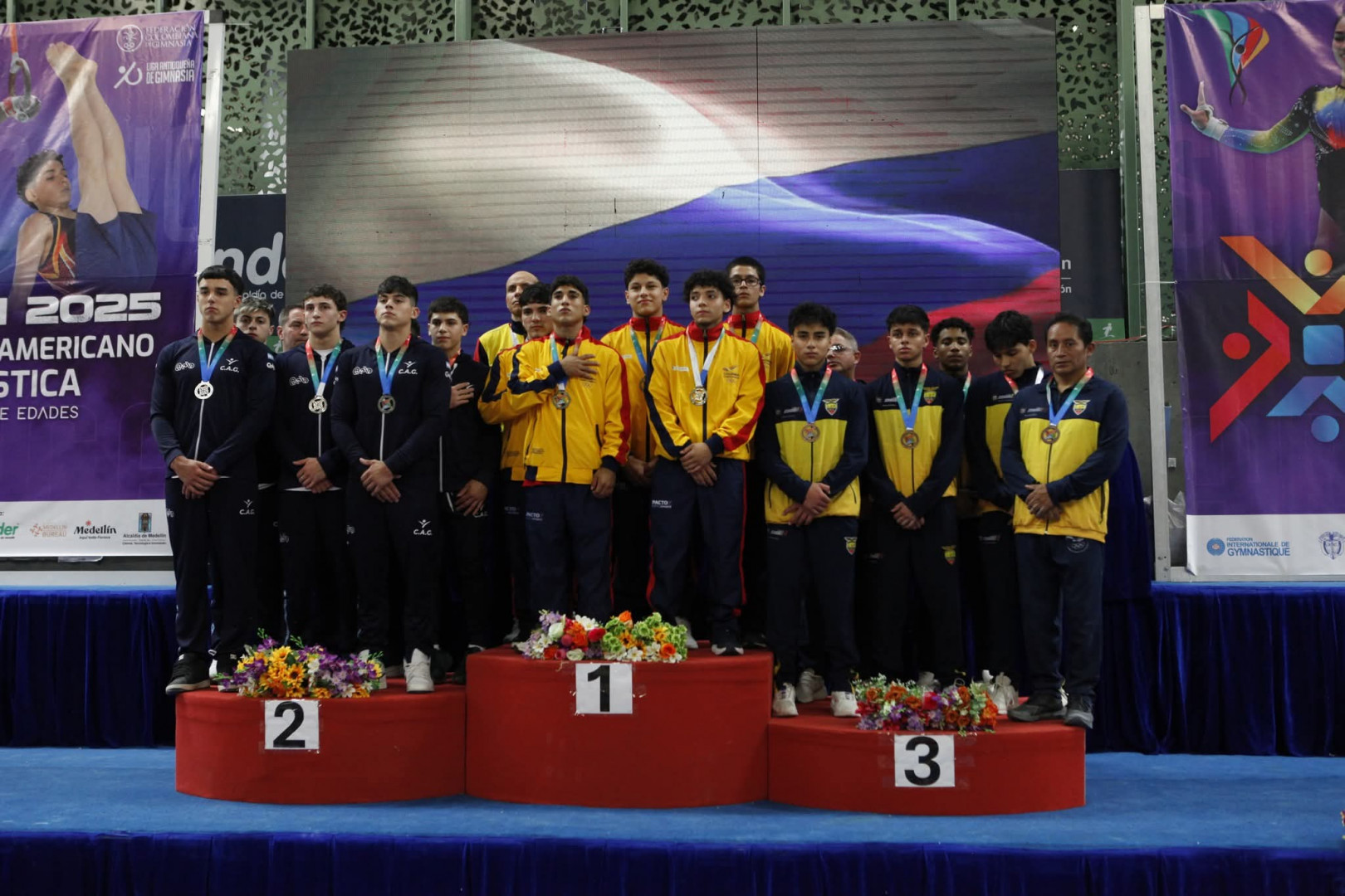 En Colombia, Argentina se subió a todos los podios en las pruebas por equipos: en la rama femenina el conjunto junior, integrado por Julieta Lucas, Amparo Diez, Emilia Carrego, Luana Olivetti y Juana Azerma, se quedó con el título tras obtener 187.500 puntos. Mientras que el senior, compuesto por Sira Macías, Mía Mainardi, Meline Mesrropián, Milagros Curtí Ruiz, Dolores Carregal y Lucía González, fue segundo con un puntaje de 199.150.