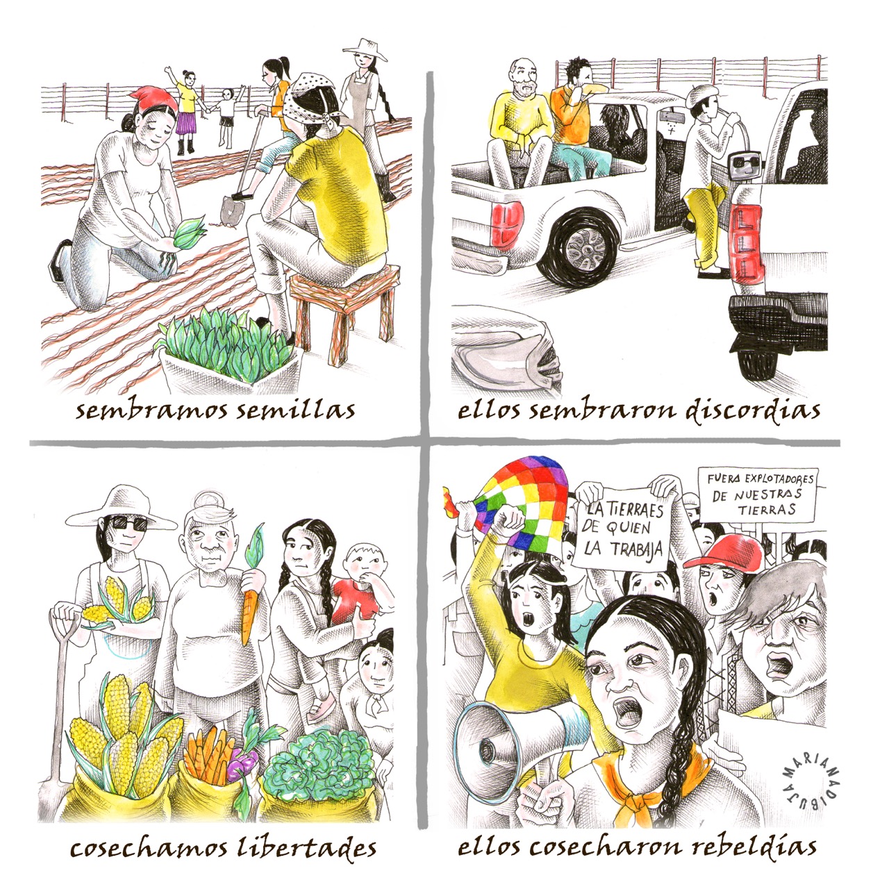 En el Mes de la Soberanía compartimos #IlustracionesAVozAlzada, una colección realizada por artistas gráficas del centro y sur de nuestro país que reivindica otras formas de ejercicio de la soberanía desde el lugar de las campesinas y mujeres rurales en la producción de alimentos, como otro aspecto de la soberanía encarnada en el día a día de los territorios.