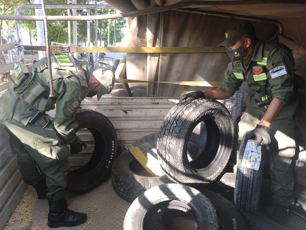 En tanto, ayer, miembros de la Unidad realizaban un control vial en el mismo lugar cuando inspeccionaron la carga de otro vehículo que trasladaba ocho cubiertas extranjeras sin aval aduanero.