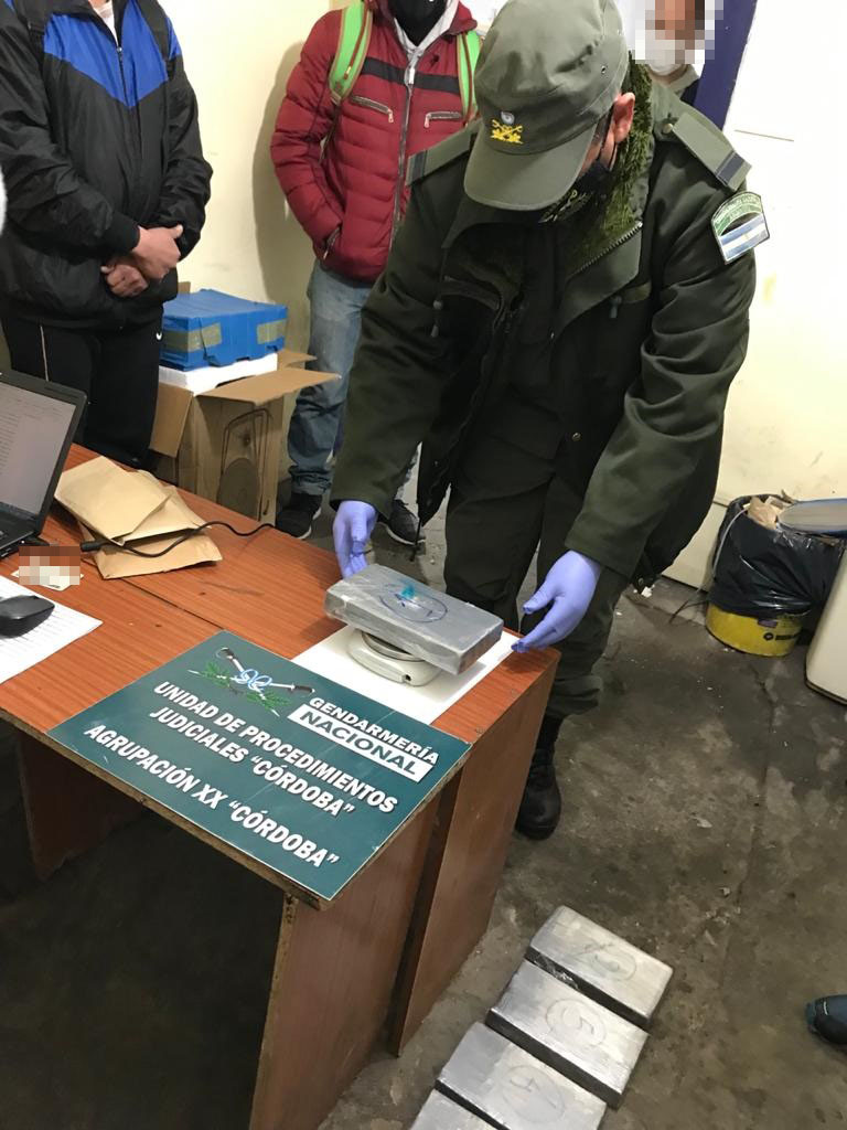 El paquete había sido despachado en Salta, y trasladado a la ciudad de Córdoba por una empresa de transporte. El 23 de junio, se presentó un ciudadano a realizar el retiro de la encomienda, quien quedó demorado hasta la apertura de la caja. Ante la presencia de testigos, se halló un equipo de sonido portátil que tras ser desarmado se constató la presencia de paquetes rectangulares con un peso total de 6 kilos 367 gramos de cocaína.