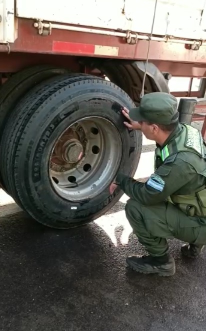 Como resultado del registro rodado, los uniformados constataron la presencia de 12 neumáticos nuevos (colocados en el acoplado), sin aval aduanero.