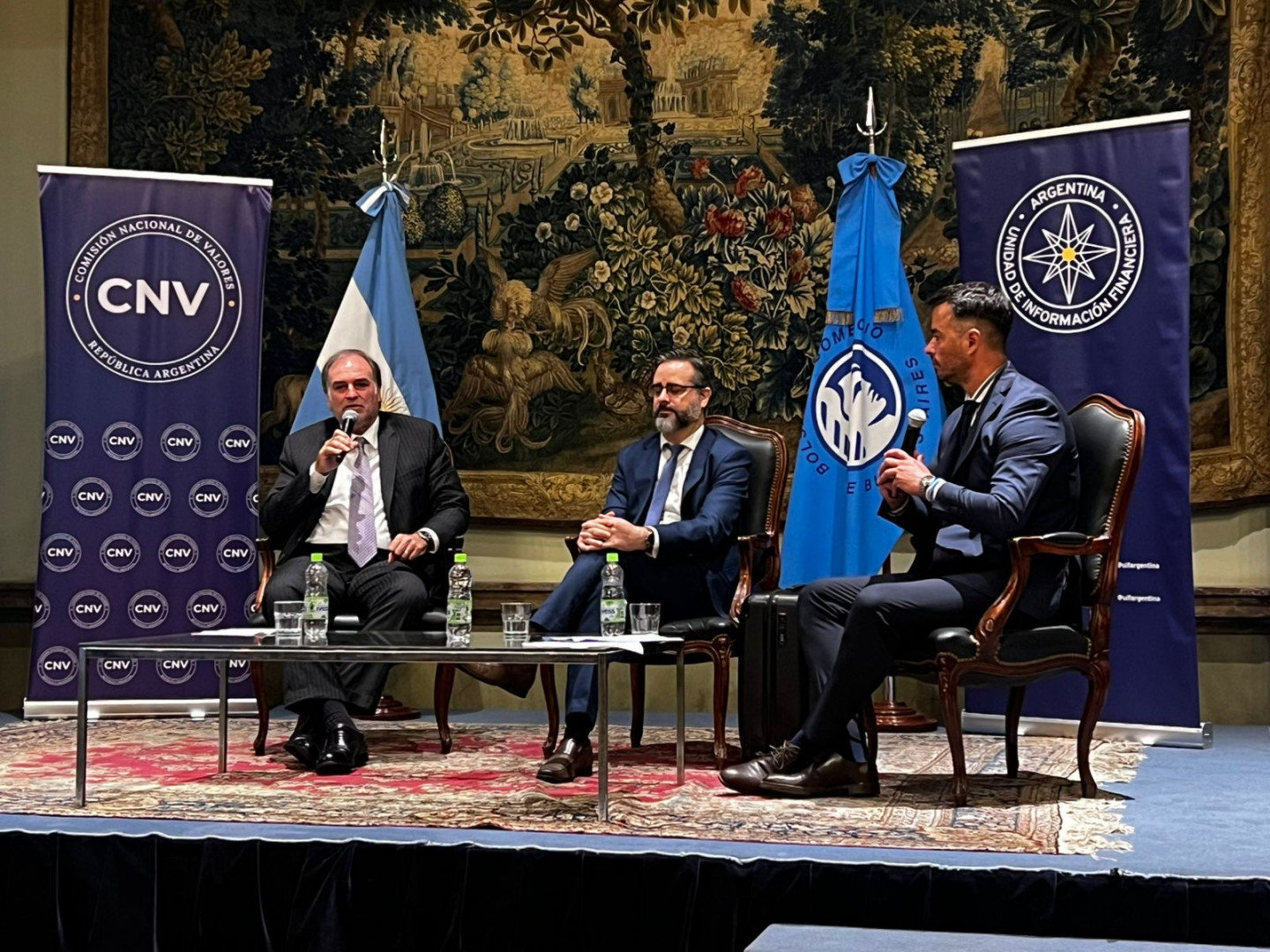 El evento realizado en la Bolsa de Comercio de Buenos Aires contó, además, con la presencia de la directora de la CNV, Sonia Salvatierra, del vicepresidente de la UIF, Santiago Martín González Rodríguez, y del director de Supervisión de la UIF, Alberto Mendoza, entre otras autoridades.