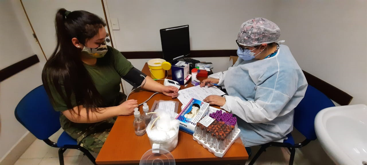 Por esta razón, profesionales pertenecientes al Banco de Sangre “HEMOHAC” del Hospital Aeronáutico Central, modificando el esquema habitual de trabajo y con el fin de llegar a los donantes voluntarios, realizaron una Jornada de Colecta de Sangre entre el personal esencial que concurre a su puesto de trabajo en el Edificio Cóndor.