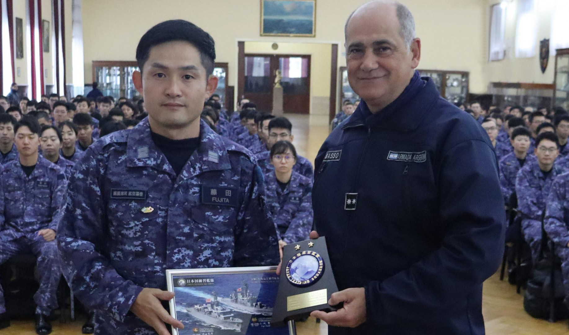 Una vez finalizado el acto, el Comandante del Escuadrón de Entrenamiento de la JMSDF, brindó una conferencia dirigida al personal de la Armada Argentina acerca del rol y los principales objetivos de su Fuerza.