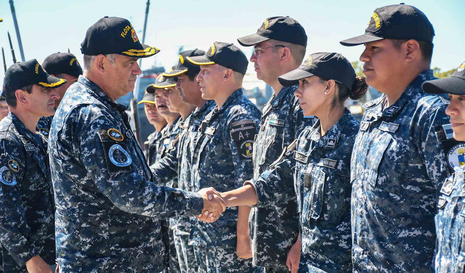 El buque fue despedido y sus maniobras supervisadas por el Comandante de la Flota de Mar, Contraalmirante Pablo Germán Basso, quien estuvo acompañado por el Comandante de la División de Corbetas, Capitán de Navío Christian David Corona.