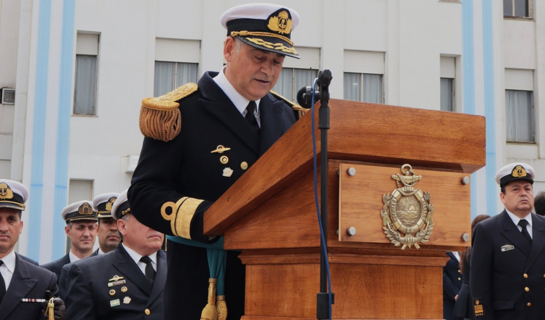 La ceremonia fue presidida por el Jefe del Estado Mayor General de la Armada, Almirante Carlos María Allievi; acompañado por el Director General de Educación de la Armada, Vicealmirante Juan Carlos Romay, y el Director de la ESNM, Contraalmirante Pablo Germán Basso.