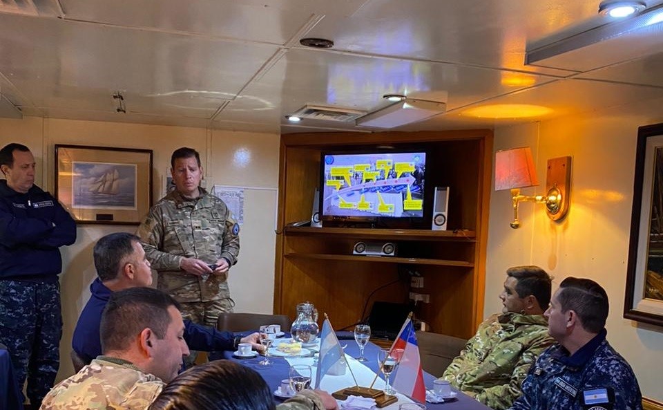 La comitiva, que se reunió durante la semana comprendida entre los días 31 de julio y 4 de agosto, estuvo encabezada por el jefe del Estado Mayor Conjunto Combinado, coronel Hugo Daniel Soria perteneciente al Ejército Argentino, acompañado por el subjefe, coronel Juan Ignacio Rubio Richasse, del Ejército de Chile, y el staff de dicho Estado Mayor, conformado por seis oficiales y dos suboficiales pertenecientes a las Fuerzas Armadas de Argentina y Chile.