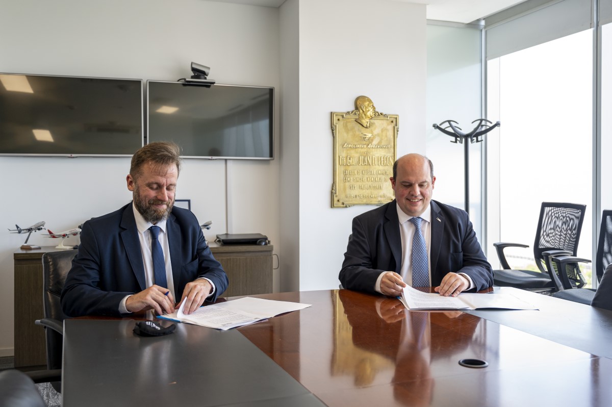 El Presidente de la JST, Julián Obaid, y el Presidente de Aerolíneas Argentinas, Pablo Ceriani, firmaron un convenio de cooperación técnica. Este acuerdo permitirá que el personal de la JST afectado a la investigación de un accidente o incidente de aviación en la Argentina o en el exterior disponga de pasajes que la empresa reservará y emitirá hacia y desde el destino más próximo al lugar del suceso. Del encuentro participaron también el Director de Relaciones Institucionales de la JST, Hilario Lagos, y la Directora Ejecutiva de Aerolíneas Argentinas, Verónica Muratore.