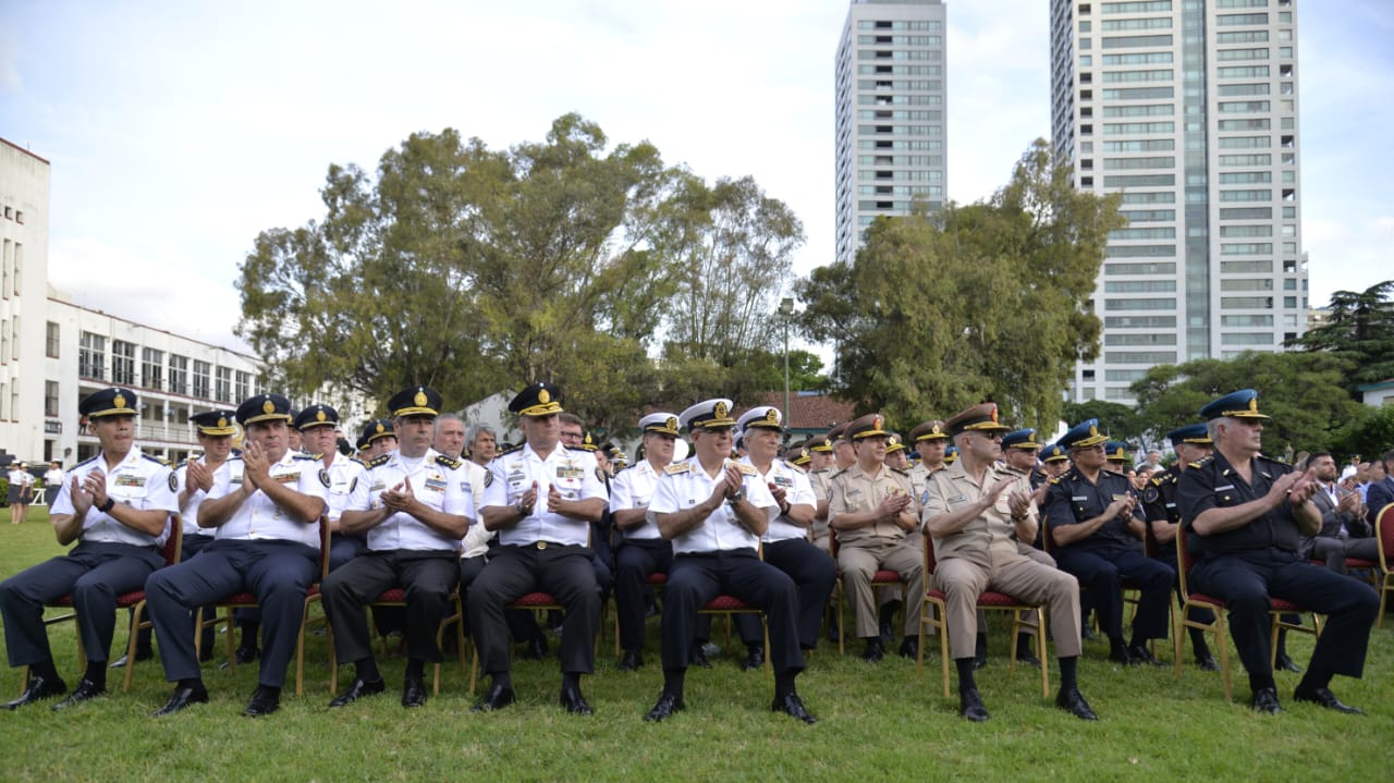 El director nacional de la Policía de Seguridad Aeroportuaria, comisionado general Alfredo Hernán Gallardo, junto con la plana mayor de la institución, acompañaron a la ministra de Seguridad Nacional, Patricia Bullrich, en el acto de cierre de gestión.