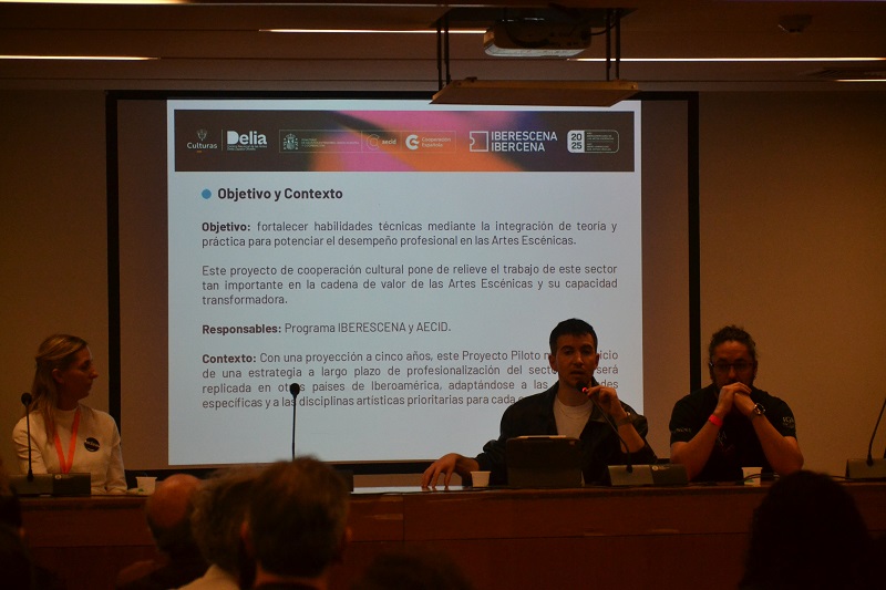 Representantes del programa impulsado por la Secretaría de Cultura de la Nación, en articulación con el Teatro Nacional Cervantes, participaron en la mesa “Políticas culturales en torno a la profesionalización escénica: vínculos entre diseñadores y técnicos”.