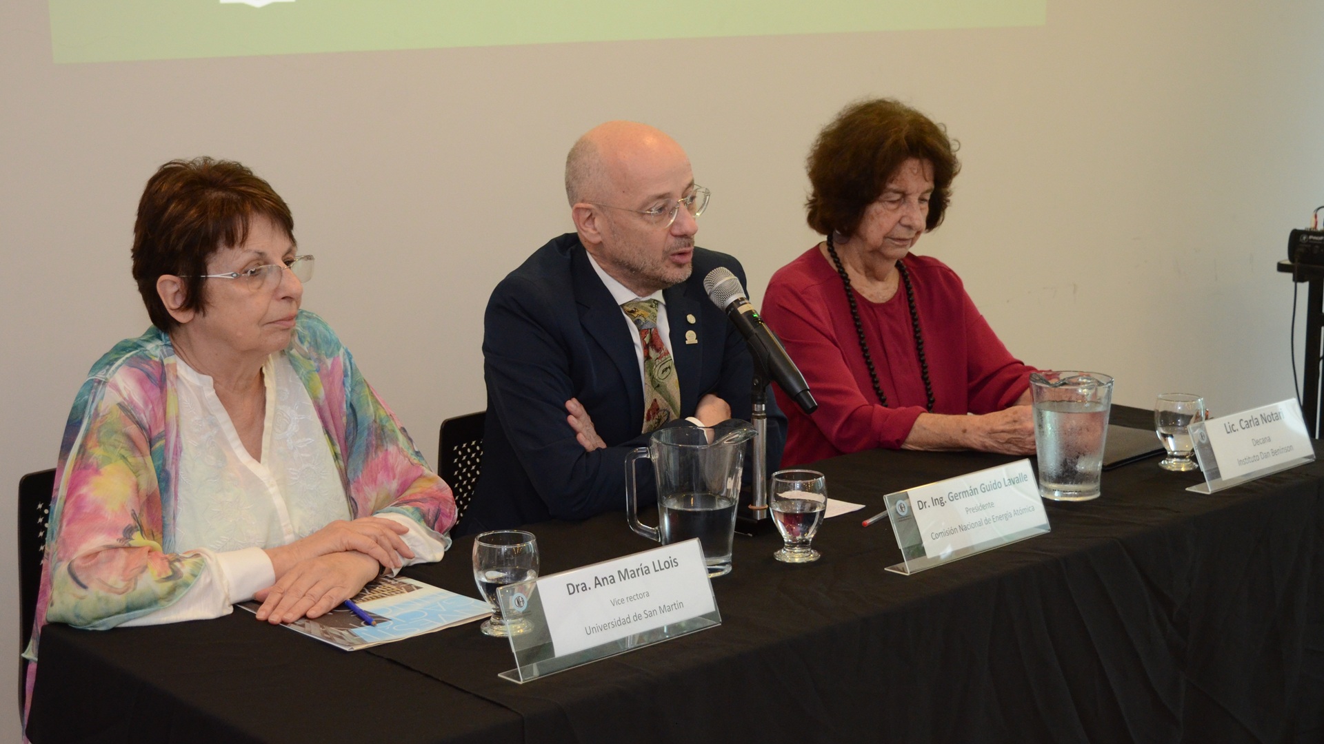 La ceremonia fue encabezada por el presidente de la CNEA, Dr. Ing. Germán Guido Lavalle; la vicerrectora de la UNSAM, Dra. Ana María Llois; y la decana del IDB, Lic. Carla Notari.