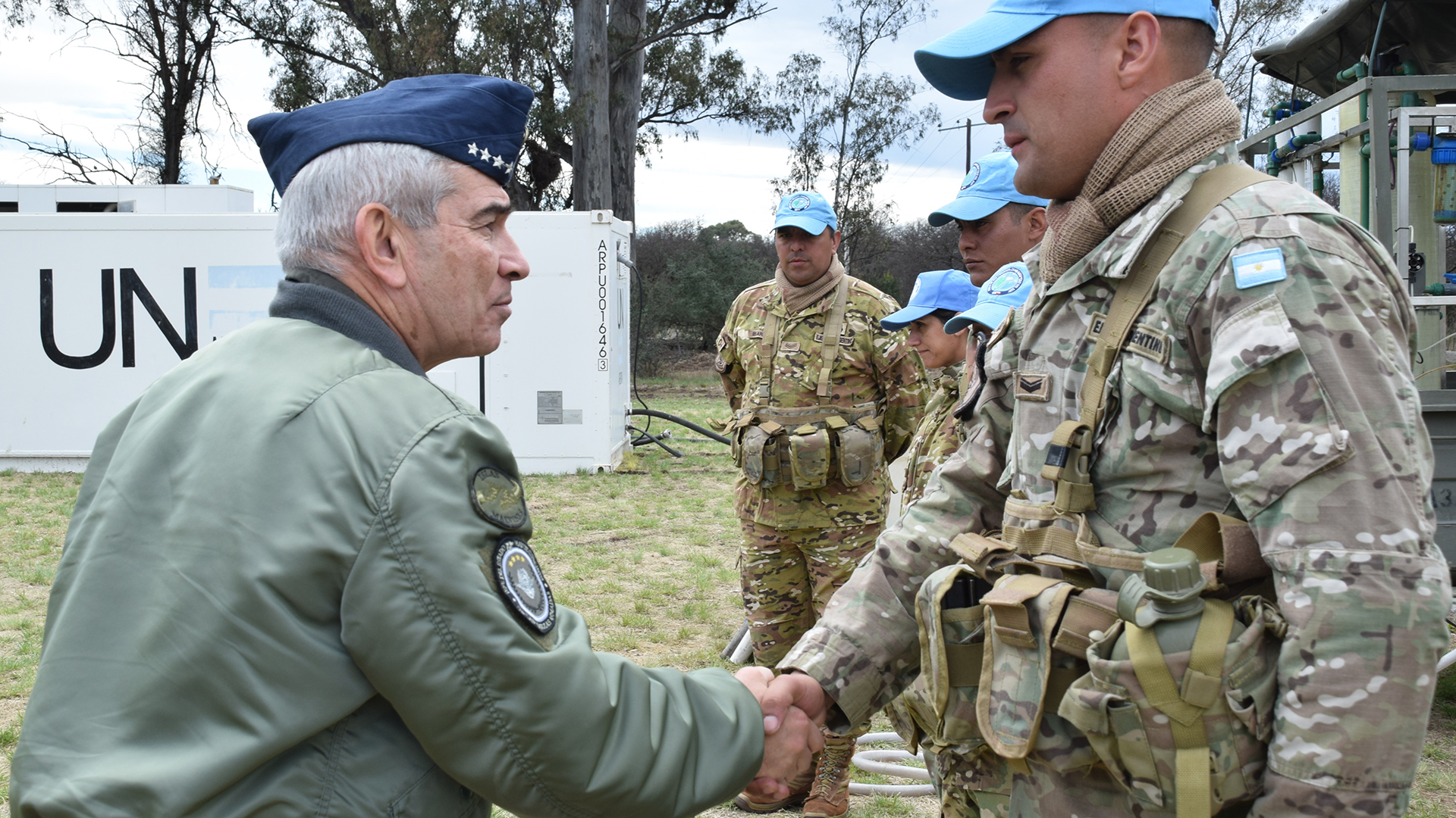 Junto al brigadier general Isaac también participaron de las actividades el comandante de Operaciones Conjuntas de las Fuerzas Armadas, general de brigada Cristian Pablo Pafundi; el director del CAECOPAZ, coronel Ignacio Oscar Ortiz; y el jefe del Regimiento de Infantería Mecanizado 12, teniente coronel Mario Cristóbal.
