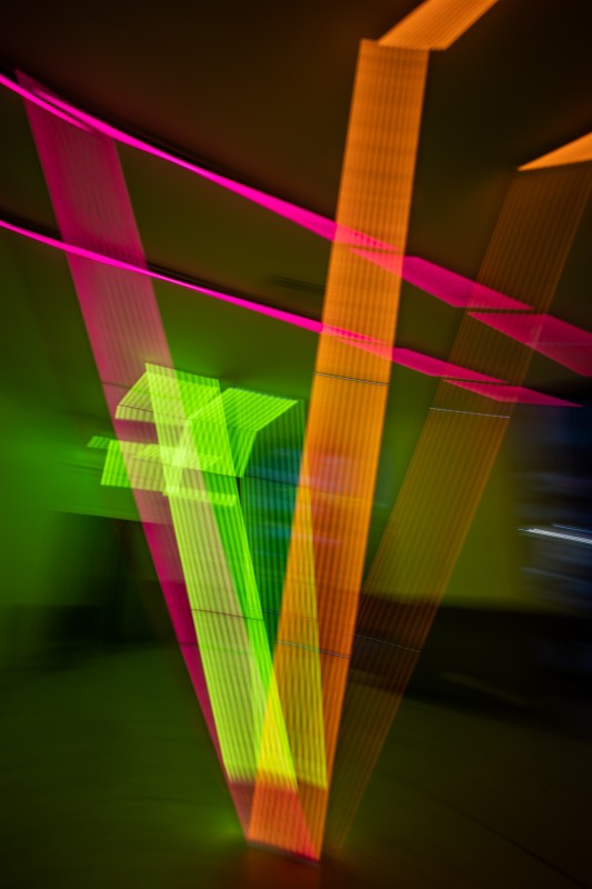 El artista Leo Ocello exhibe su nueva obra Veo Veo en el Centro Cultural Borges, una instalación site specific que interviene el hall de entrada del espacio con líneas de luz que recorren, tensan y reformulan el entorno arquitectónico.