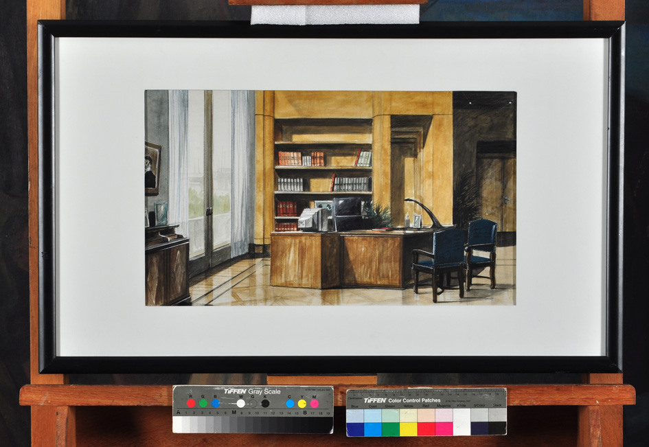La Coordinación, durante estos meses, estuvo trabajando en la puesta en valor de diversas obras que ingresaron al Taller de Restauración. En ese marco, la conservadora-restauradora Natalia Gómez Constanzo realizó la limpieza de tres acuarelas de autor no identificado, cuya temática remite al despacho del Ministro en el Palacio de Hacienda.