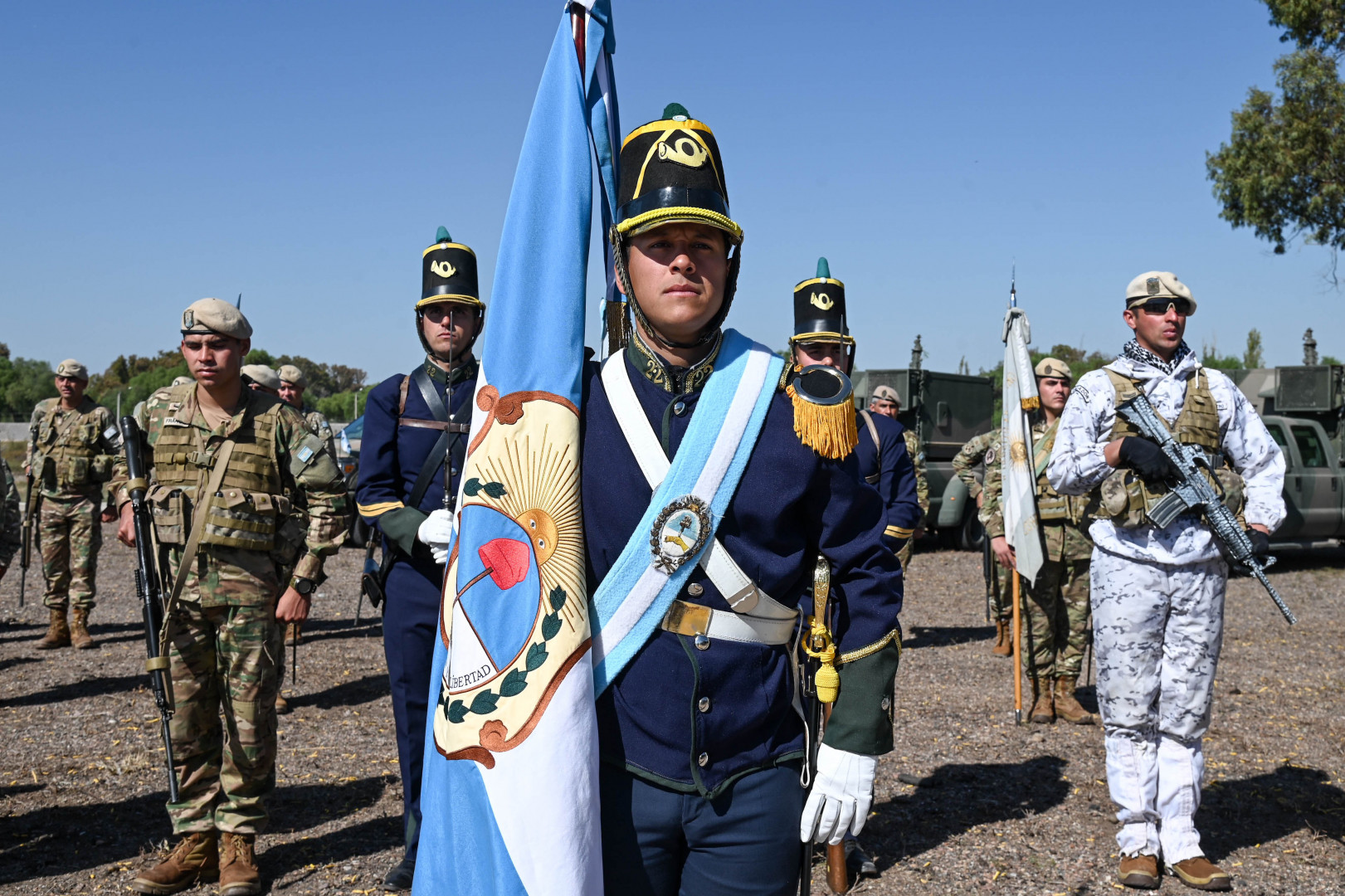 Estuvieron presentes en el acto la jefa de Gabinete Luciana Carrasco; el jefe del Estado Mayor Conjunto de las FFAA, brigadier general Xavier Julián Isaac; del Ejército teniente general Carlos Alberto Presti; de la Armada, almirante Carlos María Allievi; y de la Fuerza Aérea, brigadier Gustavo Javier Valverde. También participó la Reina Nacional de la vendimia, Alejandrina Funes, que es subteniente de Reserva.