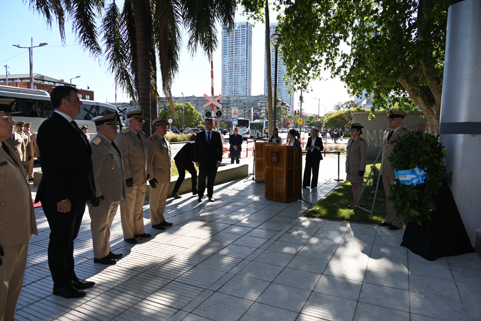 El acto tuvo lugar esta mañana en el Cenotafio erigido en su honor, emplazado en la intersección de las avenidas Macacha Güemes y Eduardo Madero, Ciudad Autónoma de Buenos Aires.
