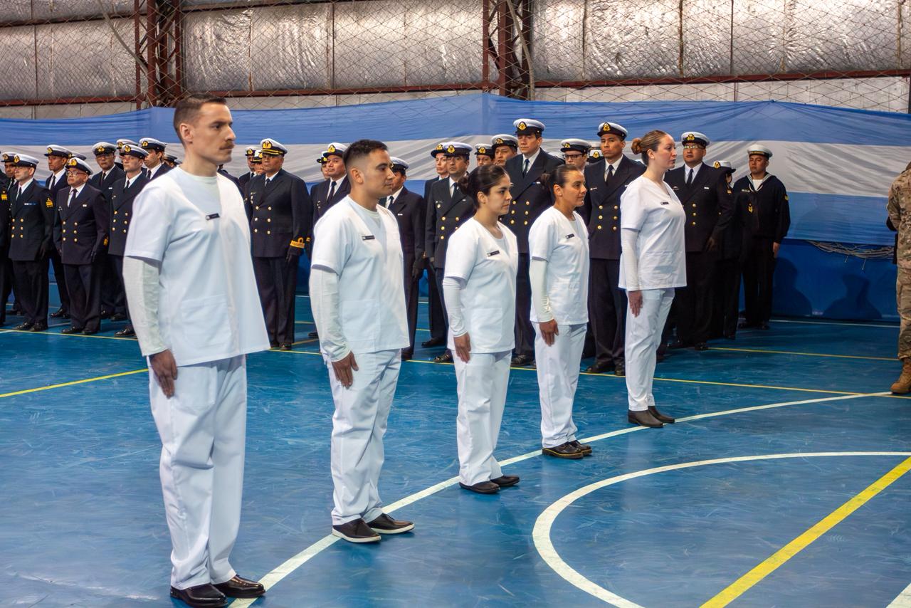 Ushuaia – En el Gimnasio “Conscripto Bernardi” de la Base Naval Ushuaia (BNUS) se llevó a cabo la ceremonia de egreso del Primer Curso de Asimilación Regional Naval (CARNA) para profesionales de la salud, un hecho histórico para la Armada Argentina al concretarse por primera vez en la región austral.