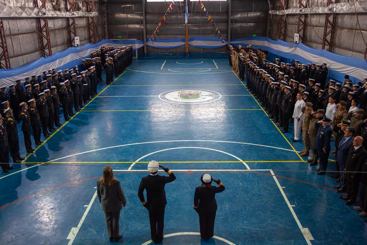 El acto fue presidido por el Comandante del Área Naval Austral, Contraalmirante Guillermo Alberto Prada, acompañado por la Viceintendenta de Ushuaia, Dra. Gabriela Muñiz Siccardi, y la Directora del Hospital Naval Ushuaia (HNUS), Capitán de Fragata Claudia Franco, junto a autoridades civiles y militares.
