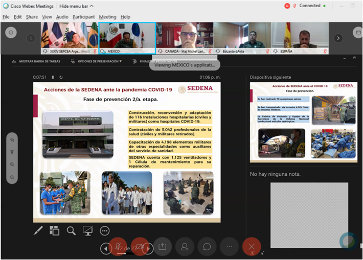 MÉXICO- Tema: “Lecciones aprendidas por parte del Ejército y Fuerza Aérea Mexicana en apoyo a las autoridades civiles contra los efectos ocasionados por el COVID-19”; Expositor: CR Juan José Montiel Maldonado