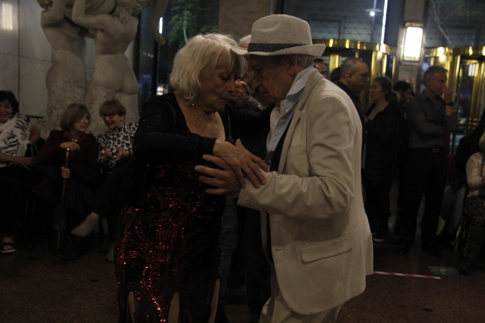 Sobre el final de la noche, la pareja de bailarines integrada por Aldana Tade y Chulo Seffino brindó una brillante exhibición de tango, y posteriormente, el dueto "AH Tango Dúo", compuesto por Antonela Alfonso en la voz, y Hugo Hoffmann, en el piano, interpretaron una serie de canciones, que el público acompañó en el salón de baile hasta la madrugada.